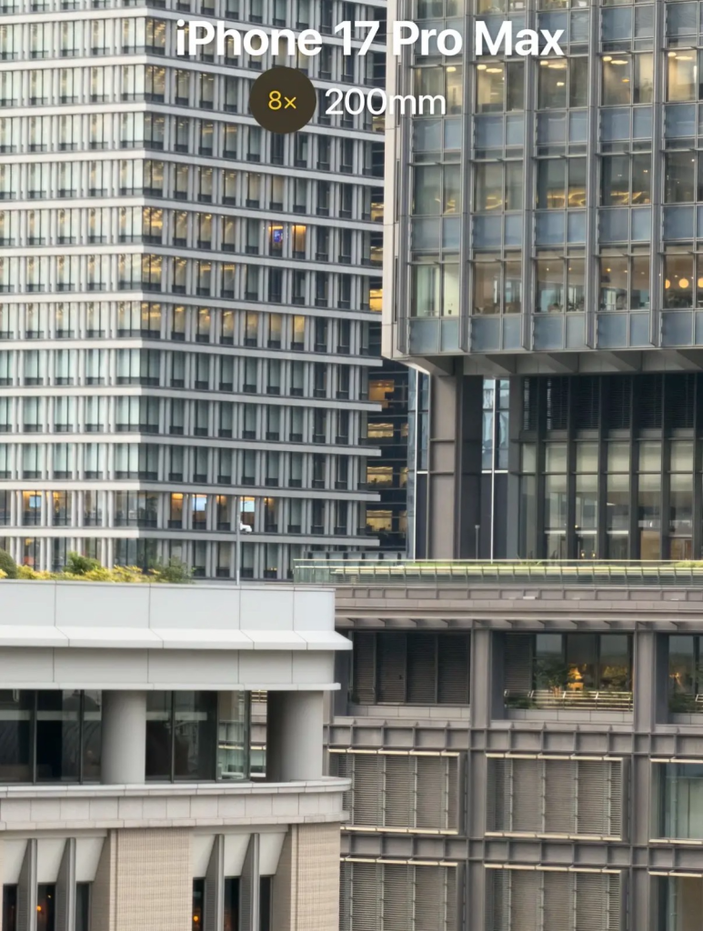 Раньше у Pro-линейки телекамера была 12 МП с 5-кратным оптическим зумом (или 3-кратным в зависимости от модели). Теперь у 17 Pro и Pro Max — 48 МП телефото модуль, поддерживающий 4-кратныц оптический зум (100 мм) и 8-кратный (200 мм) режим через кроп сенсора.
